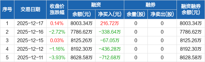 三维天地:融资净买入216.72万元,融资余额8003.34万元(12-17)