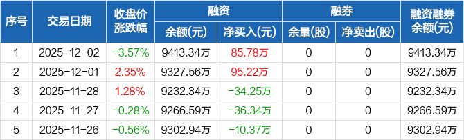 唯万密封:融资净买入85.78万元,融资余额9413.34万元(12-02)