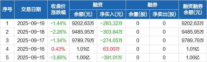 零点有数:连续3日融资净偿还累计861.8万元(09-19)