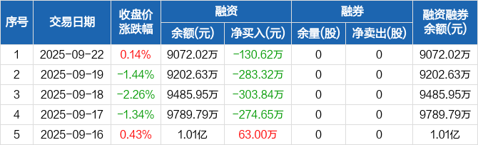零点有数:连续4日融资净偿还累计992.42万元(09-22)