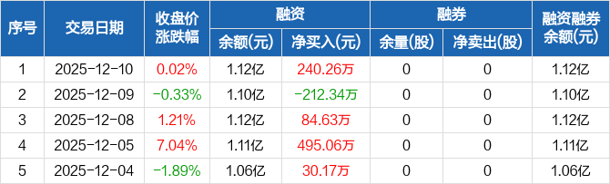 零点有数:融资净买入240.26万元,融资余额1.12亿元(12-10)