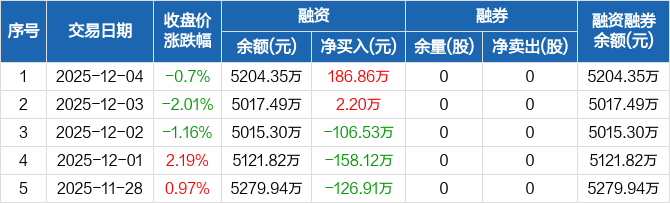 逸豪新材:融资净买入186.86万元,融资余额5204.35万元(12-04)