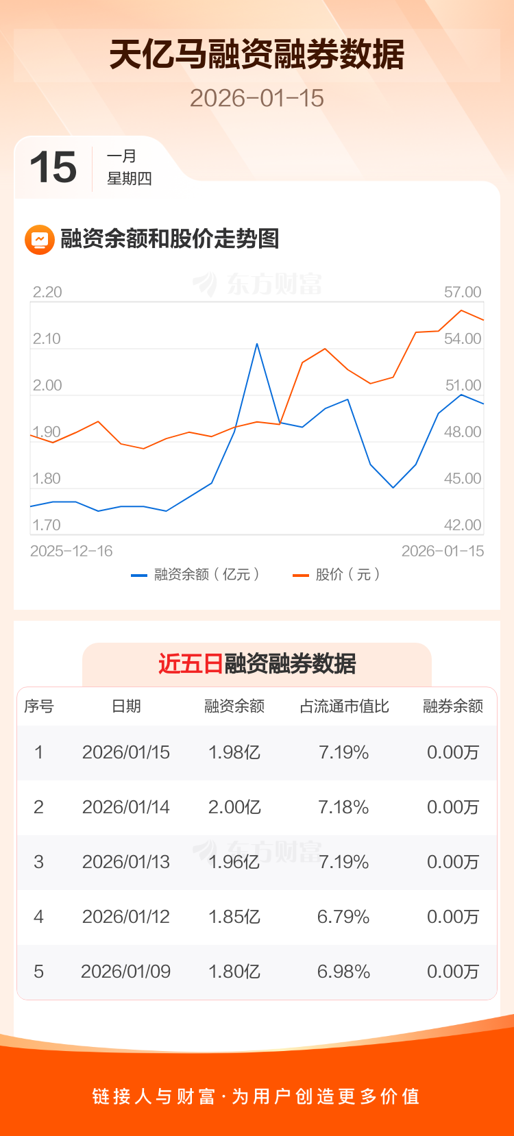 交易所最新数据显示,天亿马于2026年1月15日获融资买入972.10万元,融资偿还1162.67万元,当日融资净偿还190.57万元。目前,该股融资余额1.98亿,占流通市值比例为7.19%。