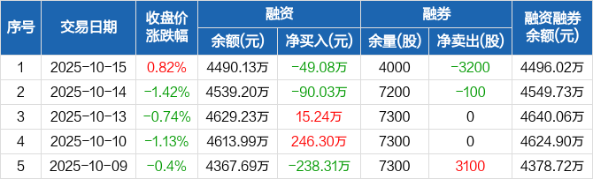 万祥科技:融资净偿还49.08万元,融资余额4490.13万元(10-15)