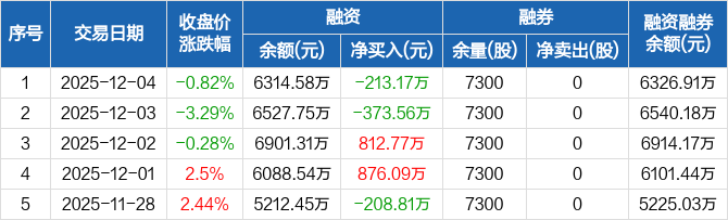 万祥科技:融资净偿还213.17万元,融资余额6314.58万元(12-04)