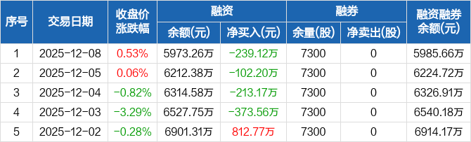 万祥科技:连续4日融资净偿还累计928.05万元(12-08)
