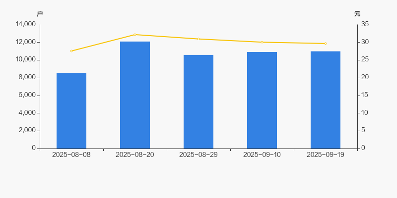2025年8月8日至今,公司股东户数显著增长,区间涨幅为28.71%。2025年8月8日至2025年9月19日区间股价上涨7.65%。