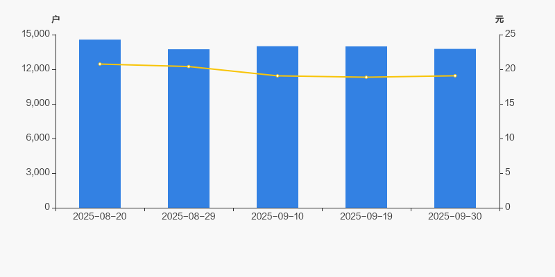 截至2025年9月30日,公司最新总股本为1.53亿股,其中流通股本为1.4亿股。户均持有流通股数量由上期的1万股上升至1.02万股,户均流通市值19.37万元。