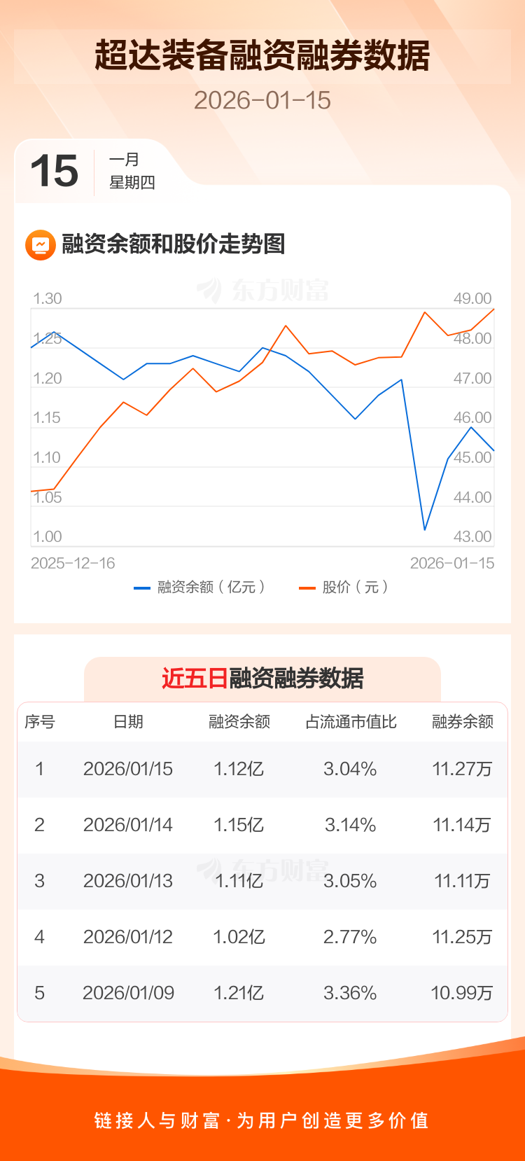 交易所最新数据显示,超达装备于2026年1月15日获融资买入1300.31万元,融资偿还1549.49万元,当日融资净偿还249.19万元。目前,该股融资余额1.12亿,占流通市值比例为3.04%。