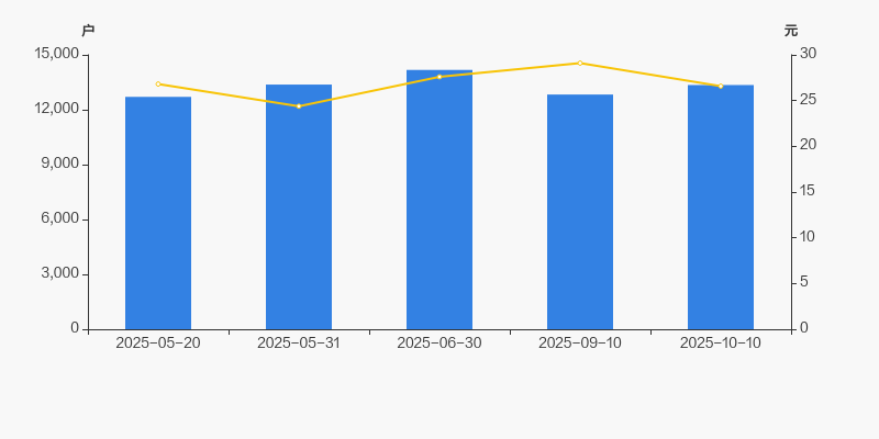 截至2025年10月10日,公司最新总股本为2.55亿股,其中流通股本为6630.67万股。户均持有流通股数量由上期的5167股下降至4966股,户均流通市值13.2万元。