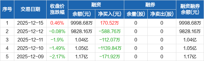 奥尼电子:融资净买入170.52万元,融资余额9998.68万元(12-15)