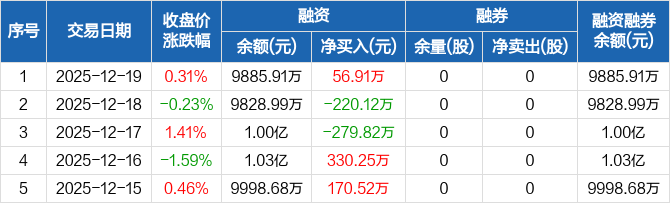 奥尼电子:融资净买入56.91万元,融资余额9885.91万元(12-19)