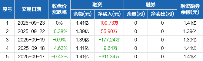 善水科技:融资净买入109.73万元,融资余额1.41亿元(09-23)