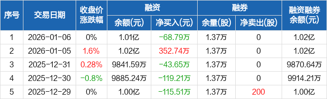 善水科技:融资净偿还68.79万元,融资余额1.01亿元(01-06)