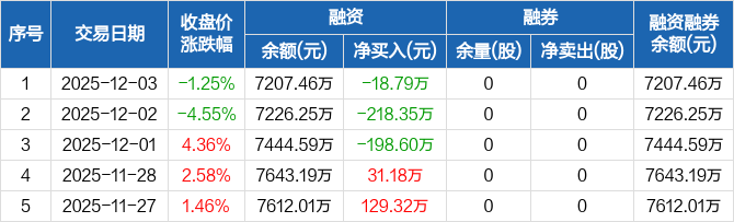 泰祥股份:连续3日融资净偿还累计435.73万元(12-03)