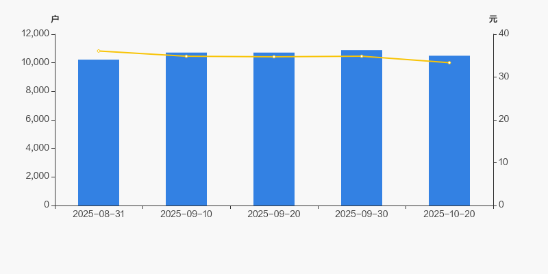 2025年8月31日至今,公司股东户数有所增长,区间涨幅为2.67%。2025年8月31日至2025年10月20日区间股价下降7.56%。