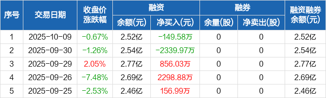唯科科技:融资净偿还149.58万元,融资余额2.52亿元(10-09)