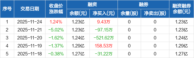 喜悦智行:融资净买入9.43万元,融资余额1.23亿元(11-24)