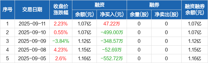 迈赫股份:融资净买入47.22万元,融资余额1.07亿元(09-11)