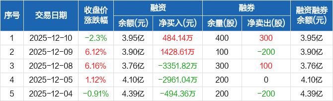 大族数控:融资净买入484.14万元,融资余额3.95亿元(12-10)