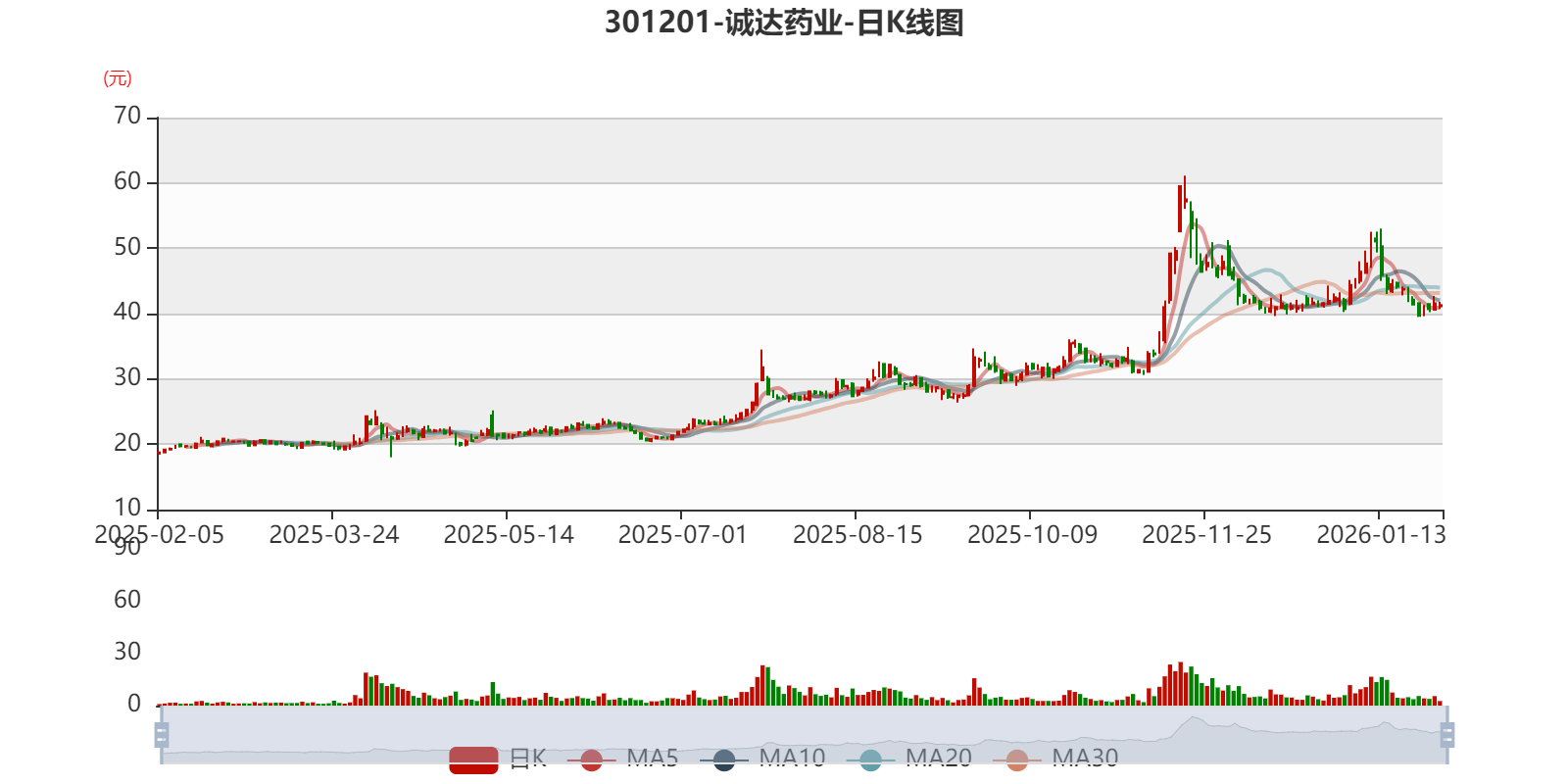 中证智能财讯诚达药业(301201)1月28日晚间披露2025年度业绩预告,预计2025年归母净利润亏损1100万元至1800万元,上年同期亏损2810万元;扣非净利润亏损2750万元至3450万元,上年同期亏损5767万元;基本每股收益-0.0726元/股至-0.1188元/股。以最新收盘价计算,市净率(LF)约3倍,市销率(TTM)约17.06倍。