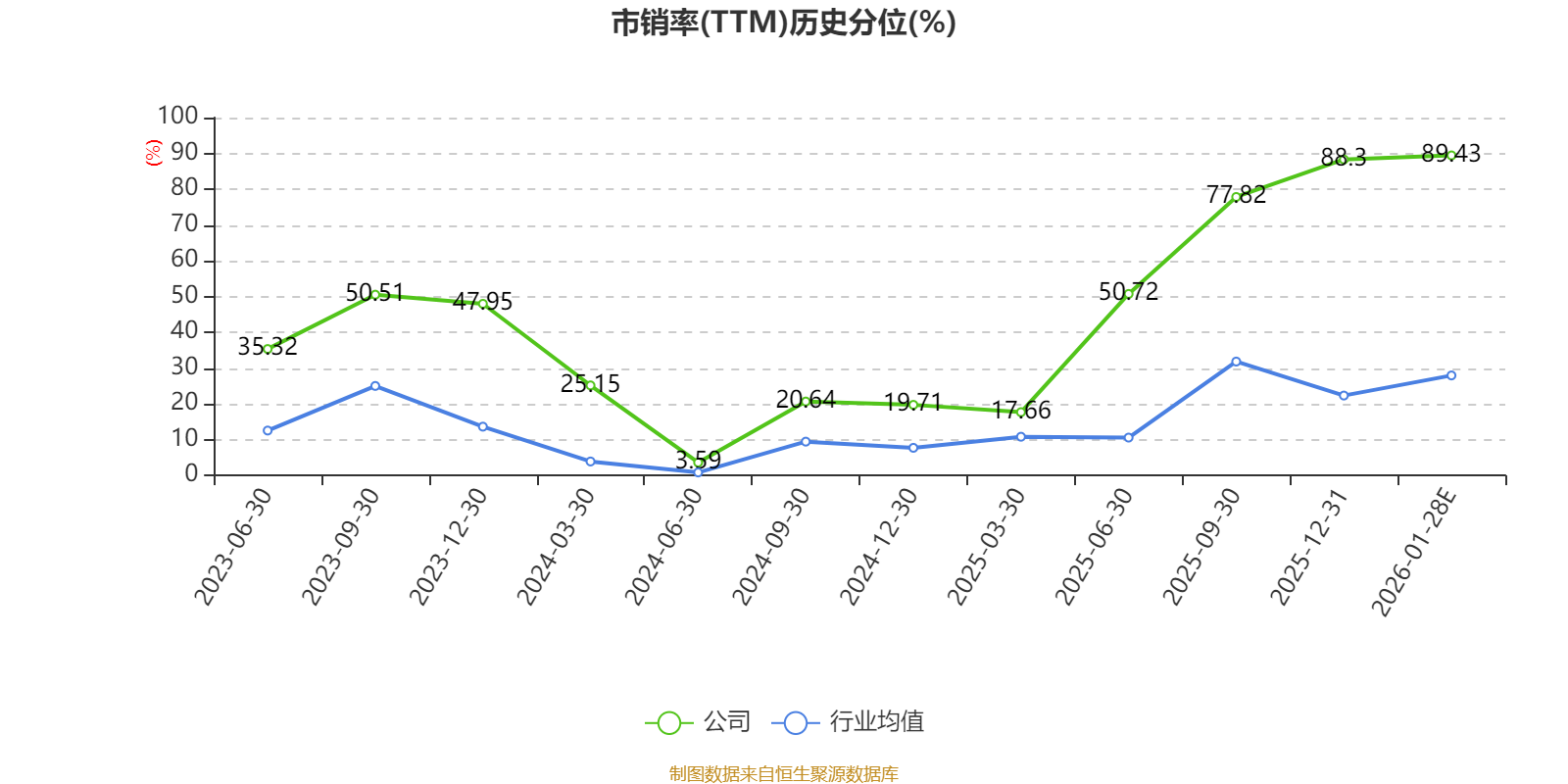 文中市盈率和市销率采用TTM方式,即以截至最近一期财报(含预报)12个月的数据计算。市净率采用LF方式,即以最近一期财报数据计算。三者的分位数计算区间均为公司上市以来至最新公告日。