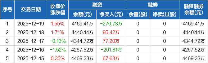 国泰环保:融资净偿还270.73万元,融资余额4169.41万元(12-19)