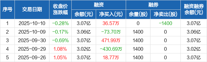 三元生物:融资净买入36.57万元,融资余额3.07亿元(10-10)