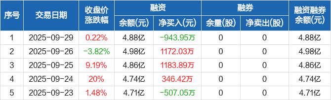 联合化学:融资净偿还943.95万元,融资余额4.88亿元(09-29)