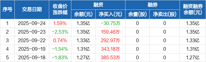 亨迪药业:融资净偿还30.75万元,融资余额1.35亿元(09-24)