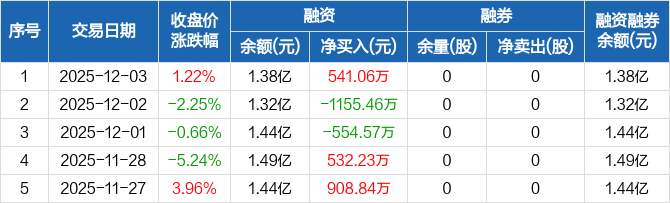 亨迪药业:融资净买入541.06万元,融资余额1.38亿元(12-03)