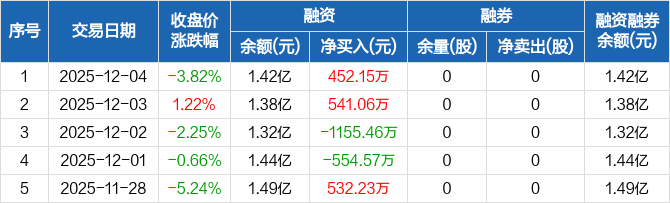 亨迪药业:融资净买入452.15万元,融资余额1.42亿元(12-04)