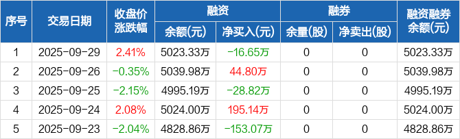 联盛化学:融资净偿还16.65万元,融资余额5023.33万元(09-29)