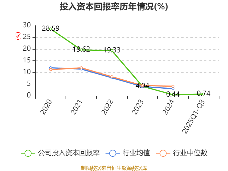 盈利能力方面, 2025年前三季度公司加权平均净资产收益率为0.92%,同比下降0.09个百分点。公司2025年前三季度投入资本回报率为0.74%,较上年同期上升0.33个百分点。