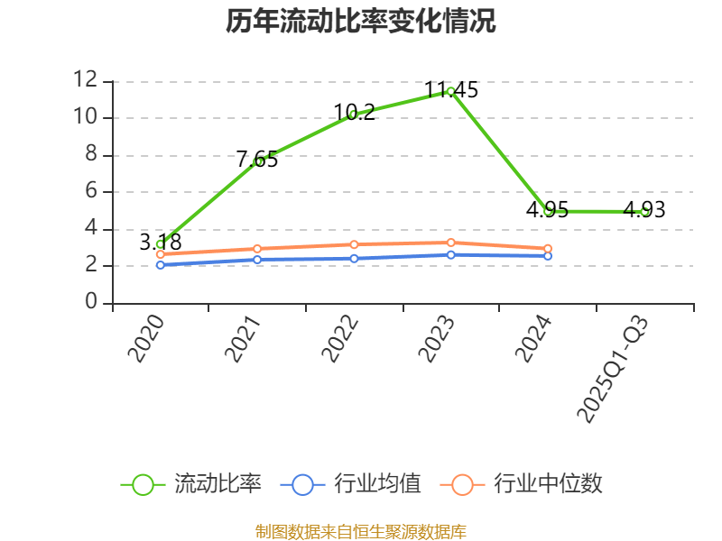 2025年前三季度,公司流动比率为4.93,速动比率为3.63。