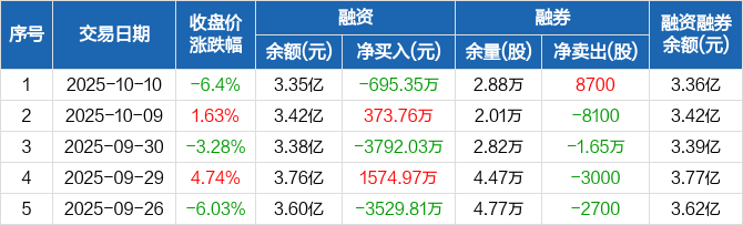 铜冠铜箔:融资净偿还695.35万元,融资余额3.35亿元(10-10)