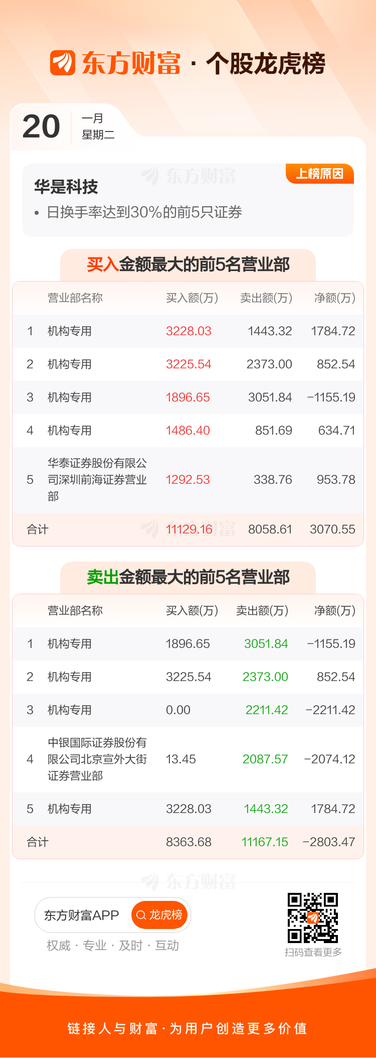 华是科技(301218)龙虎榜数据(01-20)