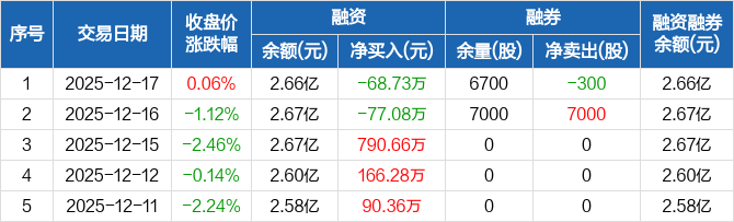 亚香股份:融资净偿还68.73万元,融资余额2.66亿元(12-17)