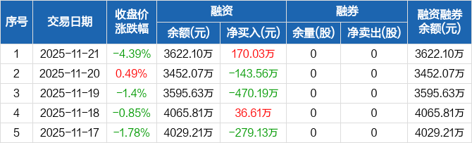 中荣股份:融资净买入170.03万元,融资余额3622.1万元(11-21)