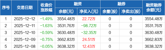 中荣股份:融资净买入22.72万元,融资余额3554.48万元(12-12)