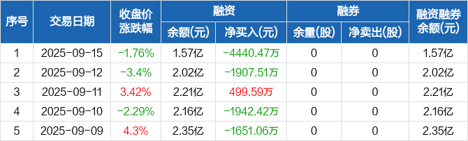 恒勃股份:融资净偿还4440.47万元,创历史新高(09-15)