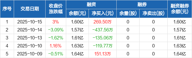 祥明智能:融资净买入269.5万元,融资余额1.6亿元(10-15)