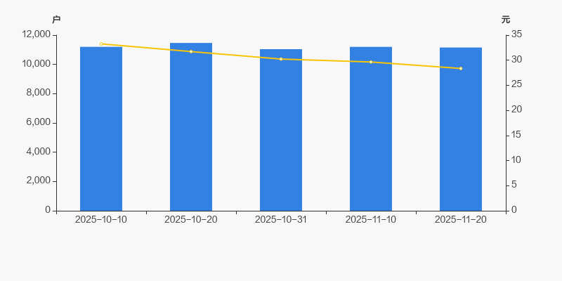 2025年10月10日至今,公司股东户数有所下降,区间跌幅为0.42%。2025年10月10日至2025年11月20日区间股价下降14.76%。