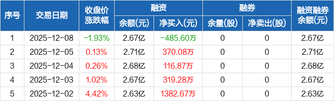 森鹰窗业:融资净偿还485.6万元,融资余额2.67亿元(12-08)