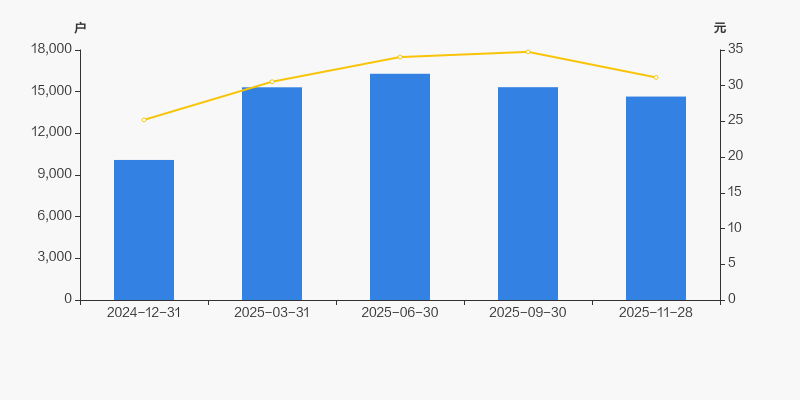 2024年12月31日至今,公司股东户数显著增长,区间涨幅为45.27%。2024年12月31日至2025年11月28日区间股价上涨23.56%。