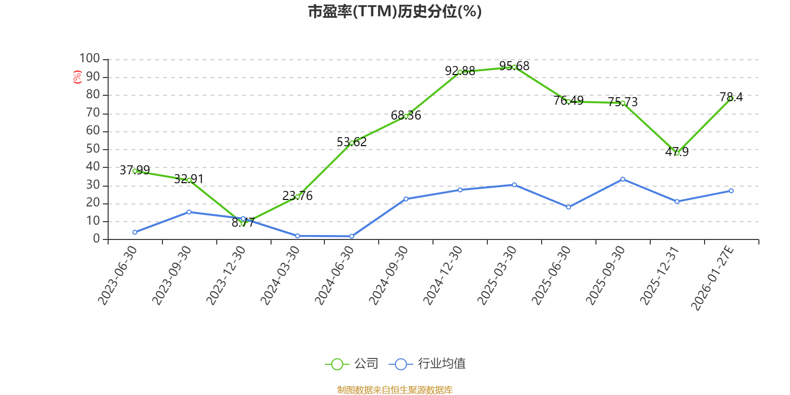 市盈率、市净率为负时,不显示当期分位数,会导致折线图中断。