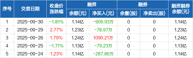 飞沃科技:融资净偿还909.93万元,融资余额1.14亿元(09-30)