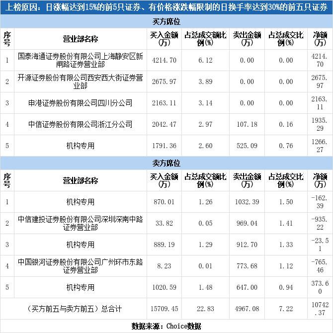 多主力现身龙虎榜,飞沃科技涨停(10-20)