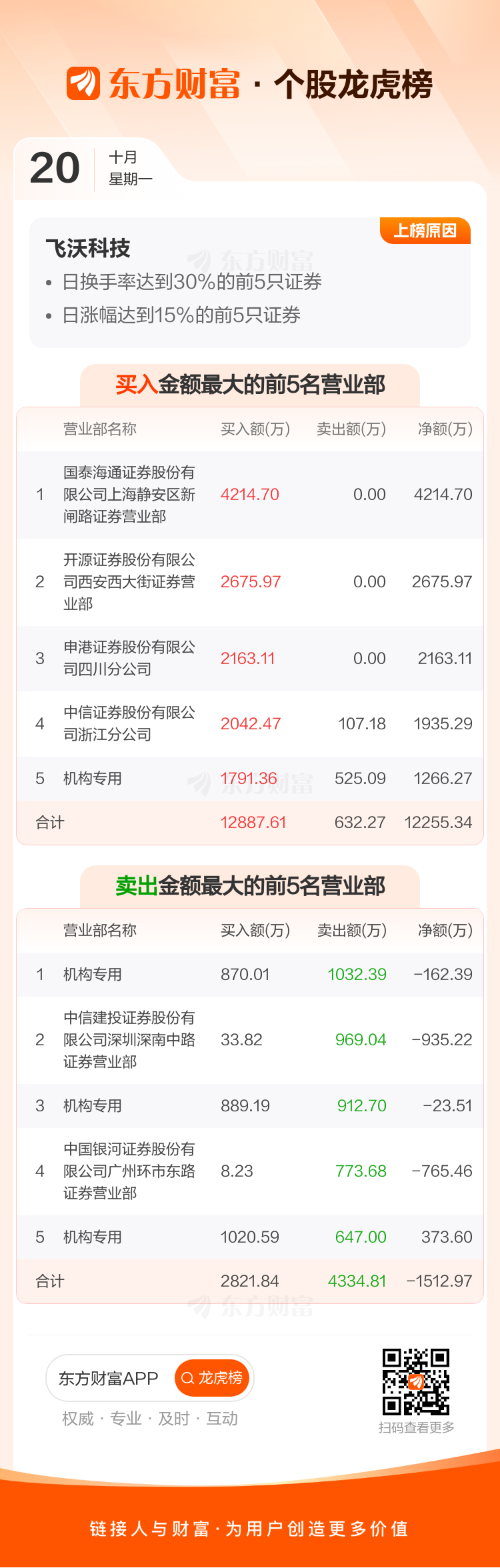 飞沃科技(301232)龙虎榜数据(10-20)