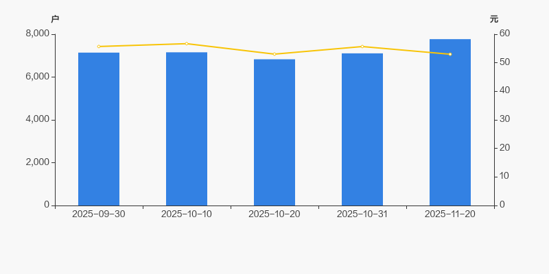 截至2025年11月20日,公司最新总股本为5147万股,其中流通股本为1991.51万股。户均持有流通股数量由上期的2802股下降至2563股,户均流通市值13.58万元。
